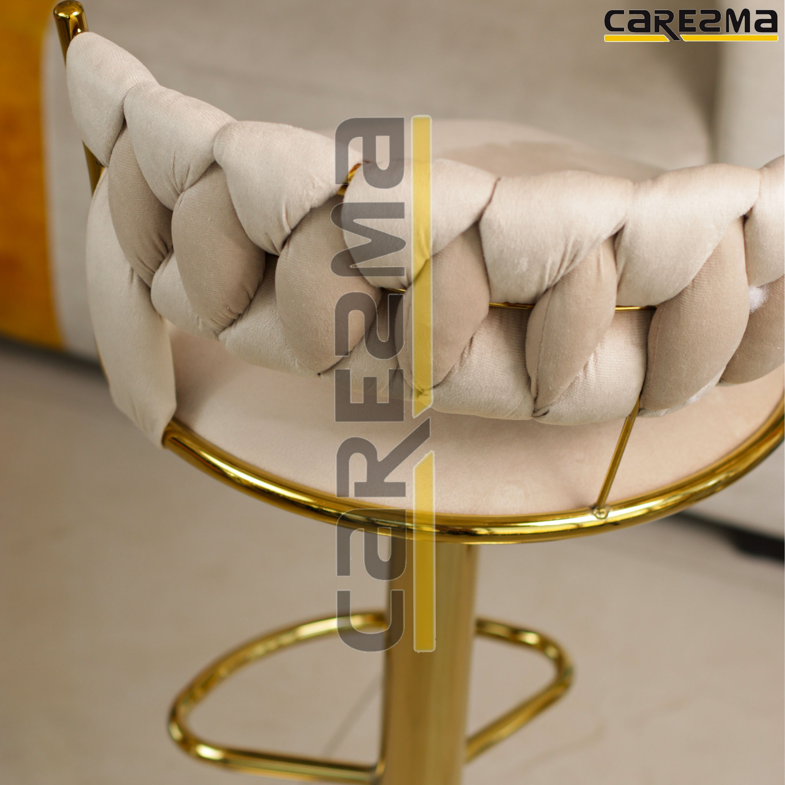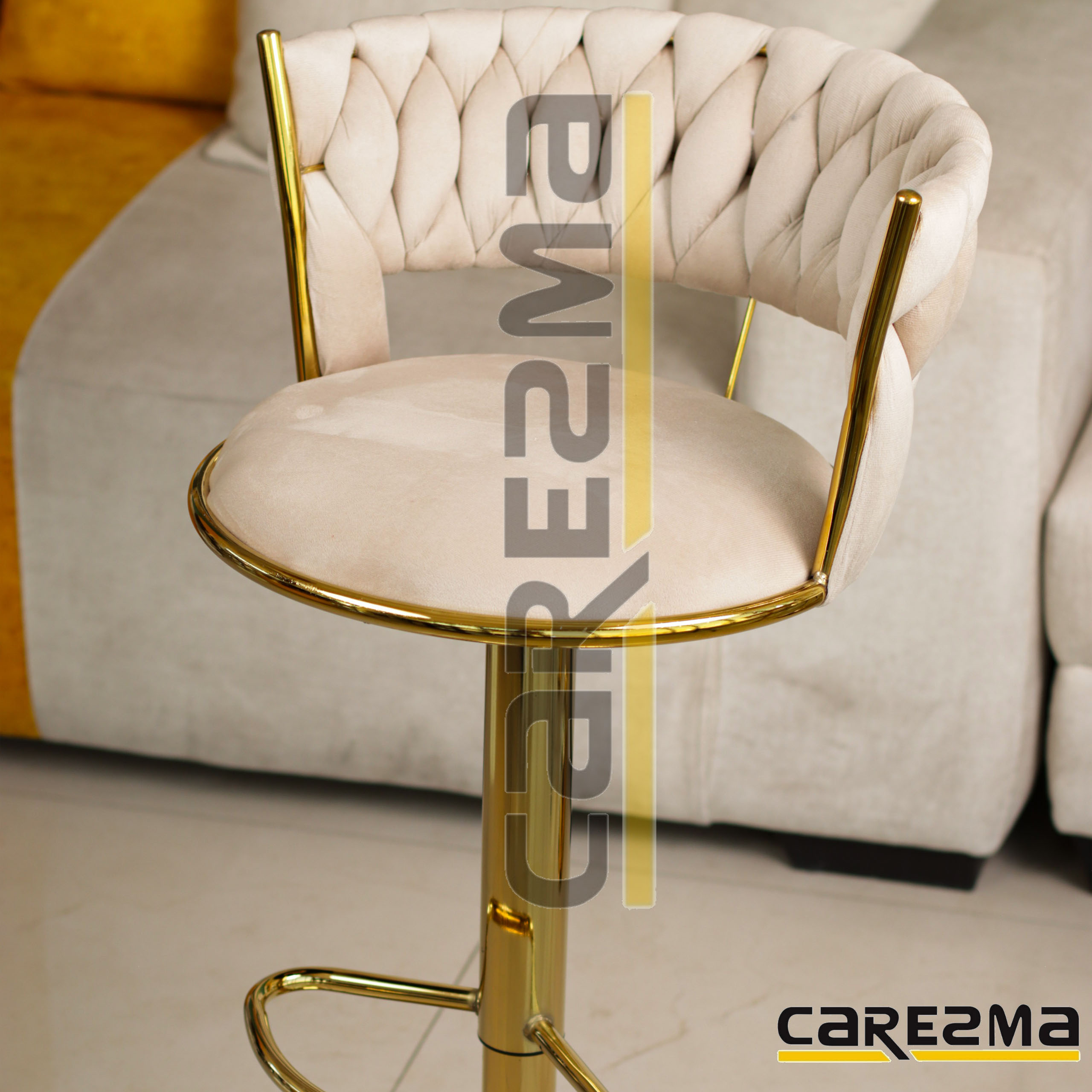 كرسي بارتفاع متغير من ادنى ارتفاع 56 سم (تقريبا) الى اعلى ارتفاع 77 سم (تقريبا),يستخدم للمطابخ، الكافيهات، غرف الجلوس وحتى ركن الضيافة، قاعدة أرضية دائرية بلون ذهبي ,قابل للدوران 360 درجة لسهولة الجلوس,مقعد عملي مع خامة ناعمة.