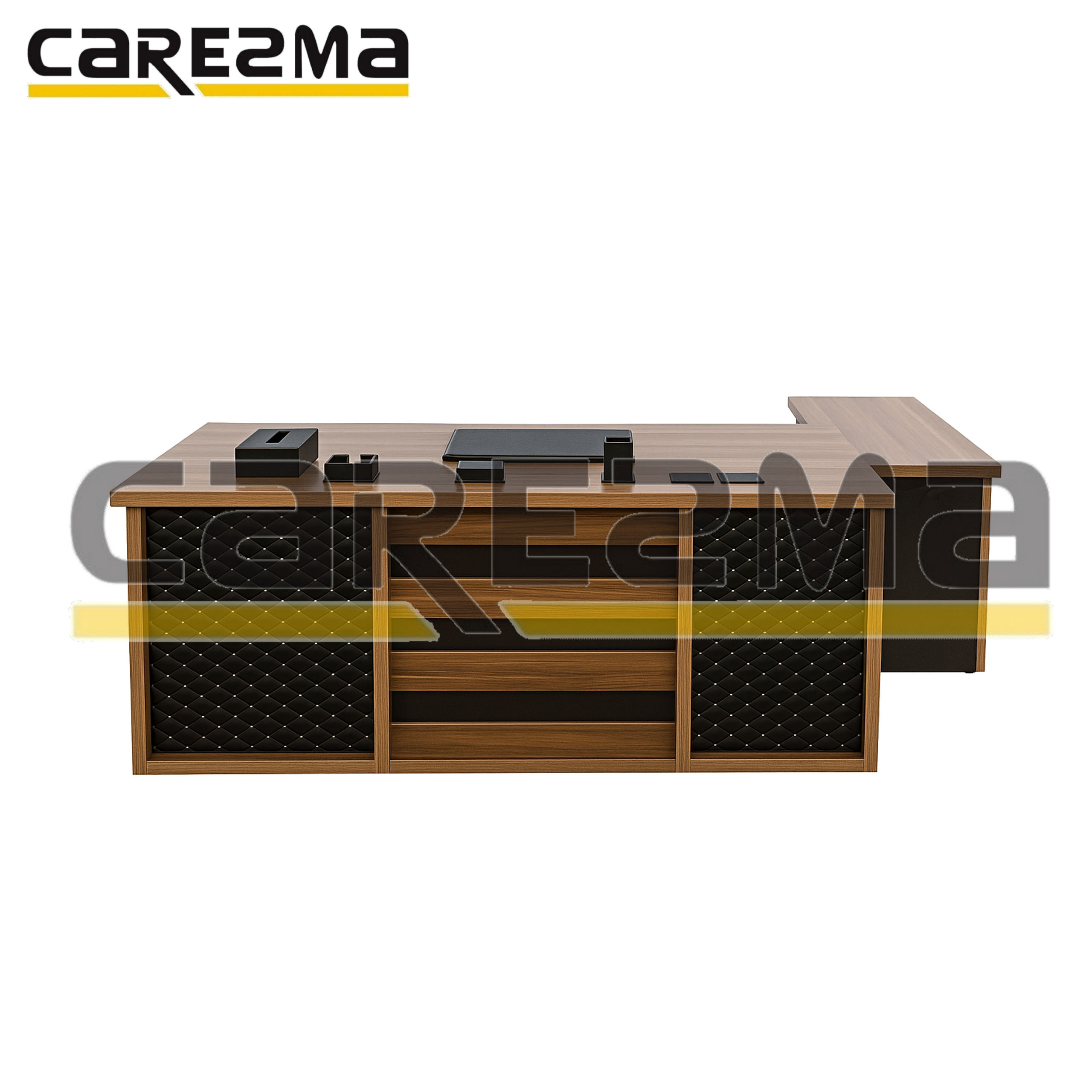 مصنوع من خشب MDF عالي الجودة مع لمسات فنية جلدية أنيقة على الواجهة الأمامية لتمنحه مظهراً راقياً يناسب المكاتب التنفيذية الرفيعة المستوى 🖤