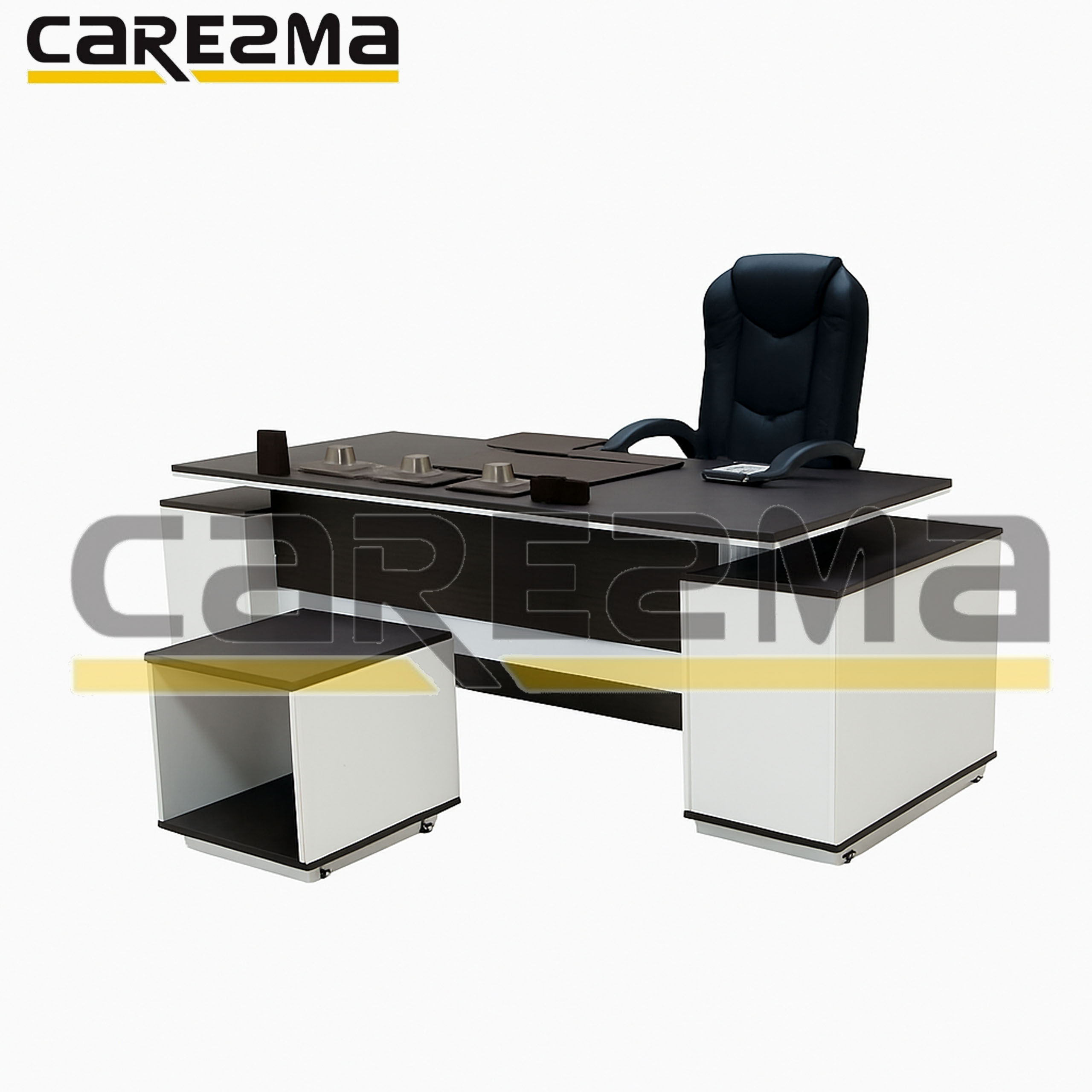 The MANAGER OFFICE DESK M17 features a sophisticated modern design combining black and white tones for a professional and elegant look.